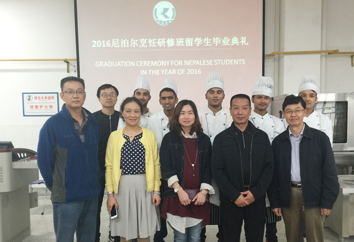 9月19日,beat365官方网站2016年尼泊尔烹饪短期培训班毕业典礼在旅游学院烹饪实训中心落下帷幕。beat365官方网站副校长李翔、国际交流处副处长陈静、旅游学院党政领导及相关老师出席了毕业典礼,毕业典礼由旅游学院院长田芙蓉主持。