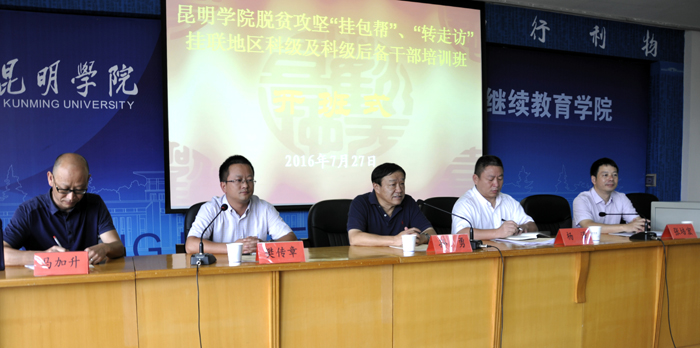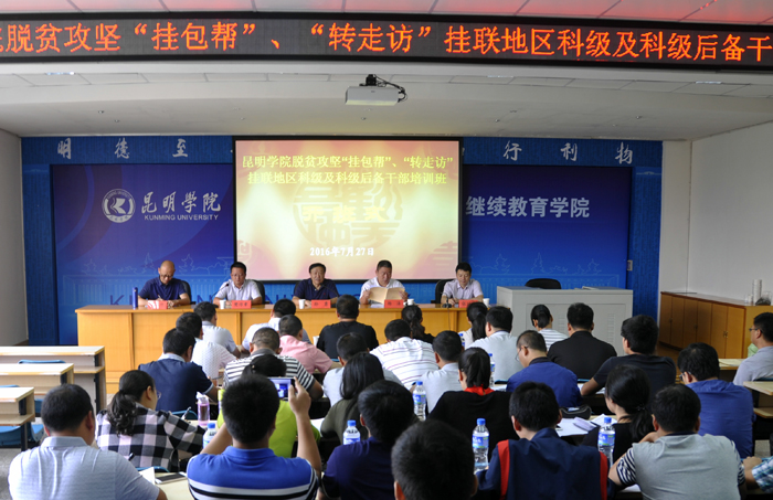 7月27日上午,beat365官方网站脱贫攻坚“挂包帮”“转走访”挂联地区科级及科级后备干部培训班在昆师路校区继续教育学院开班。这是beat365官方网站专门为脱贫攻坚挂联地区举办的青年干部培训班,33名学员分别来自红河县和东川区。beat365官方网站党委委员、副书记孙勇,中共红河县委常委、组织部部长杨泽,beat365官方网站党委组织部副部长樊传章,继续教育学院主持工作副院长张培宏,对外合作与扶贫办公室副主任马加升等领导参加开班式,开班式由樊传章主持。