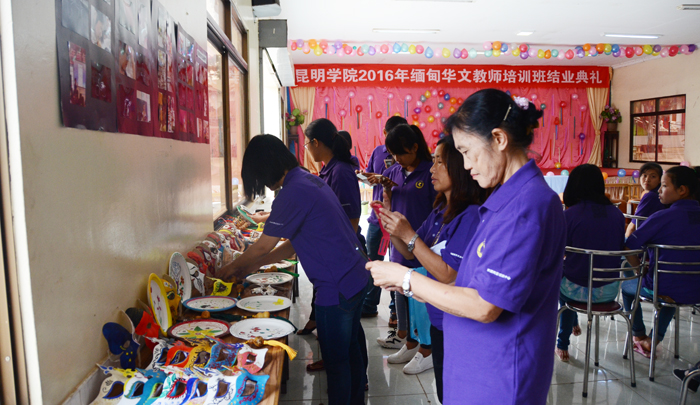 满含着激动和喜悦,学员们向参加结业仪式的来宾全面展示了学习成果,合唱、舞蹈、武术、朗诵、现场书法演示等精彩的节目表演,加之优秀教案、摄影作品、书法作品和手工艺作品的陈列展示,引得现场来宾的连声赞叹和充分肯定。看到高质量的培训成果,云南省海外交流协会驻曼德勒主任唐建军先生、当地侨领和华文学校领导均给予了高度的赞可。