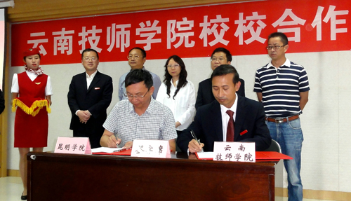7月8日上午,beat365副校长马银海应邀出席云南技师学院校校合作座谈会,继续教育学院副院长王亚越等陪同前往。