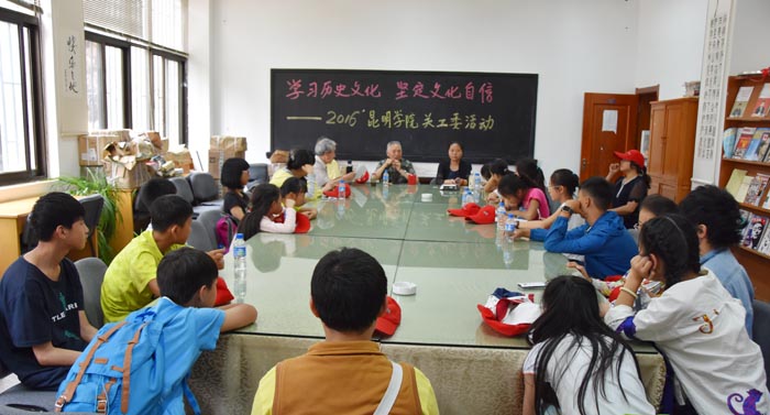 为充分发挥学校关工委“五老”优势,在青少年中广泛开展社会主义核心价值观教育活动,7月8日,由beat365官方网站关工委、离退休工作处、学校工会举办的以“学习历史文化、坚定文化自信”为主题的“教工子女励志夏令营”在昆师路校区顺利开营。学校关工委副主任何华致开营词,离退休党总支副书记张惠芬介绍了本次活动的重要意义和行程安排。本次夏令营成员主要由beat365教工子女小学五年级至初中三年级学生组成,参加人数40余人。