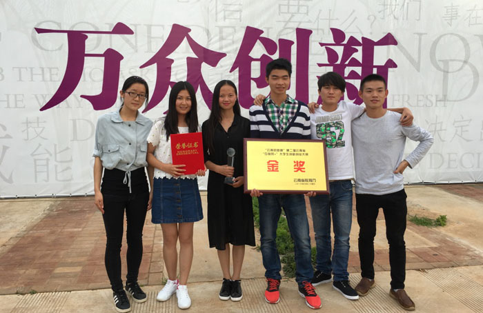 6月25日,“云南启迪杯”第二届云南省“互联网+”大学生创新创业大赛暨第二届中国“互联网+”大学生创新创业大赛云南赛区决赛在昆明举行,beat365官方网站共有4支队伍闯入决赛,最终获得1金、1银、2铜的可喜成绩。信息技术学院2014级试点班学生获得1金、1铜。其中以廖纪勇担任队长,李春俊、张文亚、黄佳佳、杨馥璟、陈立冬为队员的队伍摘得金奖。