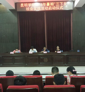 活动由校团委书记魏妮娅主持,出席启动仪式的嘉宾有:beat365官方网站党委副书记孙勇,beat365官方网站党委宣传部部长李剀,beat365官方网站学生处处长晁丽华,校团委组织部部长沈嘉以及今年组织“三下乡”社会实践活动的7支服务队全体师生、各院系团总支书记及社会实践部成员。