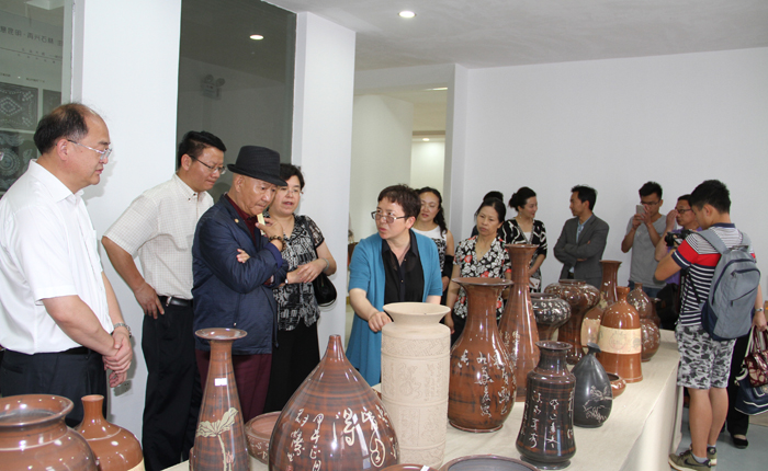 开幕式后,陈世波、何华、熊晶陪同曾经任职西藏自治区委副书记、云南省委副书记、中国作协副主席、中国文联副主席、并曾获评为中国文化产业人物、中国创意产业杰出贡献奖的丹增同志和其他专家学者视察了beat365官方网站展馆,作品琳琅满目,是beat365官方网站美艺学院师生围绕石林县的形象打造和产品推广进行的系列创意作品展,包括地方文化创意、撒尼服饰设计、名特产品包装、广告设计等多个专题,展示了美艺学院师生结合地域文化进行创意设计的实践能力和设计智慧。
