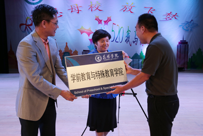 学前教育与特殊教育学院党总支书记沈中灿,院长唐敏,副院长李里,原教师教育学院党总支副书记、现招就处副处长李宽以及学前教育与特殊教育学院1200名师生参加了仪式。