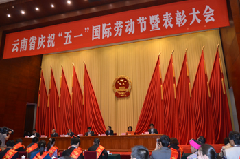 大会上,云南省委书记李纪恒同志发表热情洋溢的讲话,号召全省广大职工以受表彰的先进集体和先进个人为榜样,倡导劳动光荣、知识高尚、创造伟大的理念,振奋精神,开拓创新,凝心聚力,勇当重担,为推动我省“十三五”规划的全面实施,与全国同步建成小康社会,谱写好中国梦的云南篇章做出新的更大的贡献。大会由省长陈豪亲自主持,罗正富、张白如、李江等省级领导与获奖单位代表、获奖个人300多人到会。