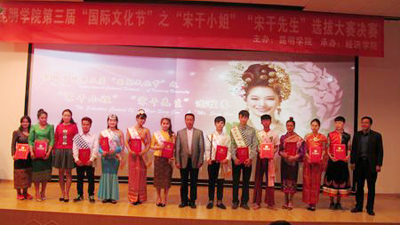 经过激烈比拼,经济学院老挝留学生宋赛同学、辛善美同学脱颖而出,荣获首届“宋干先生”“宋干小姐”桂冠,来自人文学院的老挝留学生阳光同学和经济学院的刀果双同学分别获得亚军,来自数学系的赧明湘同学和教师教育学院的余娅妮同学分别获得季军。最后,李翔亲自为他们颁奖,祝贺首届“宋干先生”“宋干小姐”选拔赛取得圆满成功,希望下一次赛事能让更多留学生参与进来,让中、泰、缅、老挝等各国学生充分融合,增强文化乃至经济交流,有更为广泛的合作与影响。