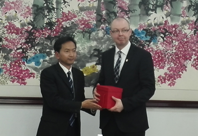会谈由李翔主持,他对于韦斯屈莱市代表团的到来表示了欢迎并介绍了beat365与会领导。然后,校长何华向来宾们介绍了学校的概况、师资科研以及beat365的国际交流合作简介。于韦斯屈莱市市长蒂姆•科伊维斯托表示beat365官方网站给他们留下了深刻的印象,通过校长的介绍更是对双方的合作充满期待。接下来他在逐一介绍代表团成员后,也对于韦斯屈莱市与昆明市的友好关系进行了回顾,强调在于韦斯屈莱市缔结的所有友好城市中,昆明市是他们市政府最为重视的,而促成beat365官方网站与于韦斯屈莱应用科技大学的合作也是他们的迫切愿望。