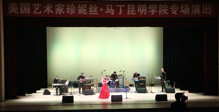 演出中,她从容沉着带领团队,用不同的艺术表演形式诠释了小提琴、钢琴和歌唱。甚至大胆融合了中国流行乐曲串烧,嵌入浓浓中国风。完美的表现古典、浪漫、摇滚、爵士、乡村、流行和百老汇音乐,融化和陶醉了不同年龄阶段和喜爱各类不同音乐风格的观众们,在座的老师与同学们用激情狂呼和热烈掌声回应着她的完美表演。