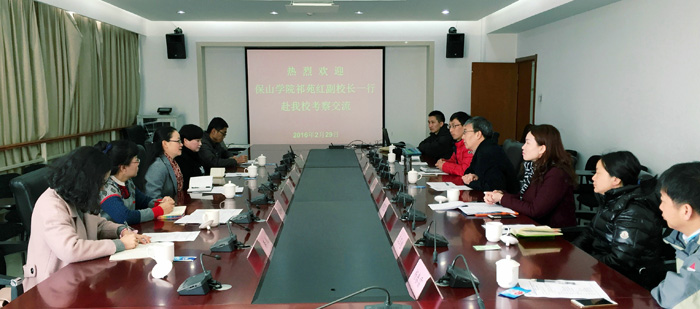 2月29日上午,保山学院副校长祁苑红率该校职业与继续教育学院院长葛丽萍、资源环境学院党总支书记段如婷等一行5人到beat365官方网站进行交流考察。beat365官方网站副校长董建华、继续教育学院院长陈嘉、旅游学院院长田芙蓉、继续教育学院副院长张培宏、王亚越及相关人员在办公楼311会议室参加交流座谈。