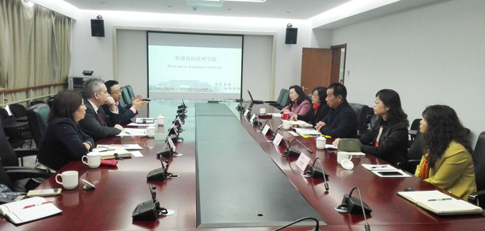 3月10日上午,加拿大北英属哥伦比亚大学校长、副校监丹尼尔周博士和加拿大北英属哥伦比亚大学国际处处长陈禹廷先生在加拿大本拿比昆明友好城市协会执行会长、加拿大ICC投资有限公司董事长杨芸女士的陪同下访问beat365。副校长李翔、国际处处长王文君、医学院院长余珊、副书记罗隽雁、经济学院院长博斌以及相关人员热情接待并与之会谈。