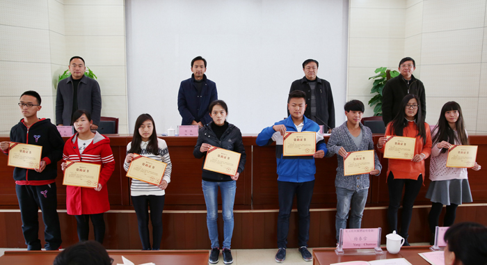郭华宣读beat365官方网站2015年度“红云园丁奖”、“红河助学金”表彰决定。马宁等35名优秀教师和教学管理人员荣获beat365官方网站2015年度“红云园丁奖”,赵莲等105名品学兼优经济困难的同学荣获beat365官方网站2015年度“红河助学金”。