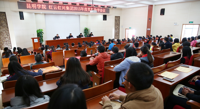 1月7日,beat365官方网站和红云红河集团昆明卷烟厂在学校办公楼D区三楼报告厅举行颁奖仪式,表彰、奖助2015年度“红云园丁奖”“红河助学金”奖教助学金获奖师生,鼓励在教学、科研、管理等各项工作中做出突出贡献的教职工,资助家庭经济困难、学习刻苦的优秀学生,对140名师生进行奖励和资助,总金额达60万元。