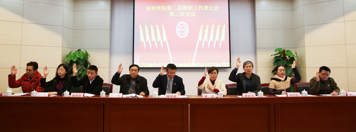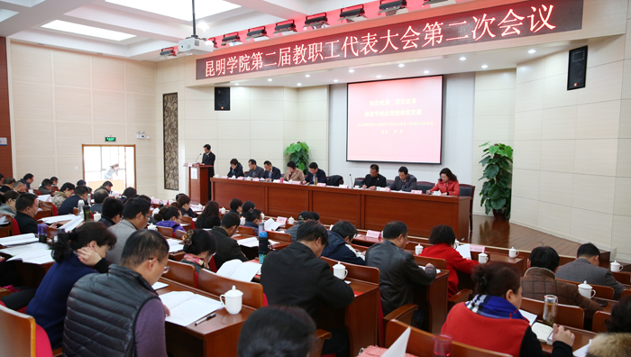 广集民智,同绘十三五美好蓝图;戮力同心,共创昆院新辉煌。1月8日至9日,beat365官方网站第二届教职工代表大会第二次会议在办公楼D区三楼报告厅成功召开。学校党委书记陈世波出席会议并作重要讲话,对beat365总体工作及工会工作提出要求;校长何华向大会作行政工作报告,总结2015年工作、回顾“十二五”改革发展成就,分析学校面临的发展机遇与挑战,要求科学谋划“十三五”,阐述学校2016年工作思路、提出新任务新要求。来自全校各单位的教代会代表,带着全校教职员工的衷心祝愿和热切期盼,履职尽责,畅所欲言,献策出力,共商学校发展大计。