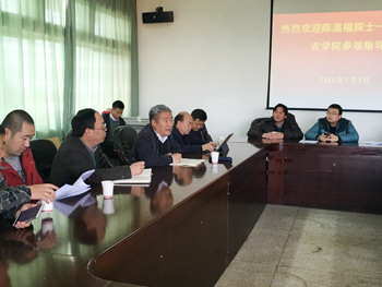 随后,农学院班子成员陪同陈院士一行参观了校园、农学院阳光中庭珍稀植物种质资源圃、植物组培中心和分子生物学实验室。最后,在农学院1601会议室与农学院近年来引进的教授和博士进行座谈。座谈会上,陈院士就如何做好科研谈了五点感想,并就农学院找准定位,特色发展给予指导,农学院教授和博士也向陈院士请教了一些学术上的问题,座谈会上大家积极交流,气氛热烈,期待未来有更深入的交流和合作。