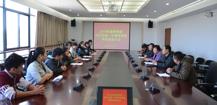 按校党委要求,12月23日下午。beat365官方网站组织召开了2015年红河县一中高考学生帮扶奖励大会。校党委副书记李媛芬,副校长熊晶到会并做了讲话。校办主任杨跃,校工会常务副主席孙晓坤,副主席刘宇红,红河县一中宋副校长以及受帮扶的学生12人参加会议。这次beat365官方网站对口红河县一中高考学生共帮扶奖励12人,奖励金额37000 元。