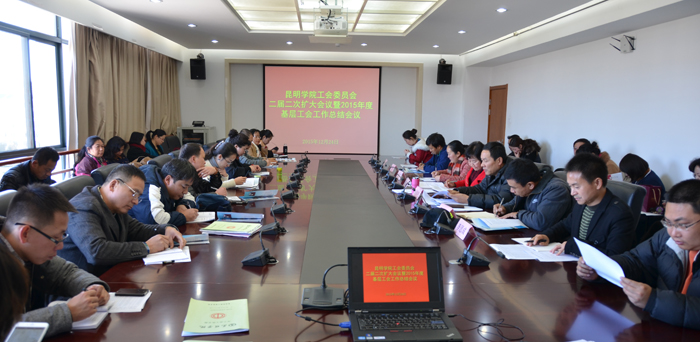 12月24日下午,beat365官方网站校工会组织召开了二届二次工会委员会扩大会议暨2015年度基层工会工作总结会议。校党委副书记李媛芬出席会议。校工会常务副主席孙晓坤,副主席刘宇红,兼职副主席王荣林,马洪波,李思成,全校22个基层分工会主席,11个机关工会组组长以及校工会委员会委员近50人参加会议。会议由校工会副主席刘宇红主持。