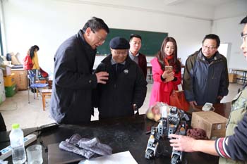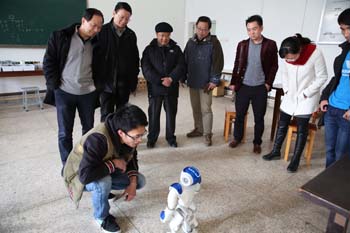 走进开放性智能机器人实验室,梁公卿看到三三两两正在做实验的同学并俯身亲切的问道:“同学们,在做什么实验呀!”“这是我们自主设计的智能机器人,现正调试程序,测试性能。”一位同学自豪地应答。“你们真了不起,都能做这高科技的东西了,能展示一下你们的成果吗?”同学们欣然答应,并将自己设计好的智能机器人按程序一一操作展示给大家。看了智能机器人动作表演及与人的互动交流等功能展示后,梁公卿高兴地赞扬道:“同学们设计的智能机器人很好,你们能将所学专业知识与实践相结合、个人兴趣与创新发明相结合,不断探索、不断创新,展示了当代青年的创新精神。”梁公卿勉励大家要惜时学习,永攀科学高峰。随行的自动控制与机械工程学院院长毕涛还向梁公卿介绍了学院依托开放性智能机器人实验室硬件平台,从2015年9月份开设了《机器人创新设计与竞赛》公选课,面向全校学生开放,吸引来自全校机制、通信、电气、物联、计科、服装、酒店等专业的50余名学生加入机器人创新设计中。通过这一门综合创新实践课,将机器人前沿领域的研究及面临的问题介绍给同学们,激发学生学习兴趣、让同学们学会思考掌握解决问题的方法、培养学生的动手能力及团队合作意识、提高学生的独立创新意识和专业素养。梁公卿听后,肯定地说,培养创新人才是高校的职能之一,beat365官方网站在人才培养中注重个人兴趣培养,引导学生作创新发明,做法值得推广。梁公卿强调,高校一定要注重创新人才培养,要抢抓创新人才培养的制高点,为学生创造条件、搭建平台,鼓励学生不断尝试创新。