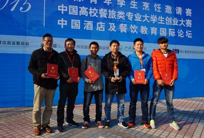 旅游学院经过旅游文化节的选拔比赛,组成了由烹饪教研室王京法副主任为领队,烹饪实验室杨春雷副主任为指导教师,2013级烹饪与营养教育专业的夏振鹏、李福寿为队员的参赛队伍。本次比赛分高校组和中职组进行,高校组22个队,中职组18个队。采用淘汰赛的形式进行。比赛队伍汇集了高校、中职学校的烹饪精英,beat365与扬州大学、河北师范大学、四川旅游学院等老牌劲旅同台竞技,是beat365参与同类比赛中规模最大、难度最高的一次。经过赛前培训、准备,在第一阶段晋级赛(前10名晋级)中以第5名的成绩脱颖而出。第二阶段因对大赛组织方提供的食材把握不到位,痛失进入厨王挑战赛决赛的机会。