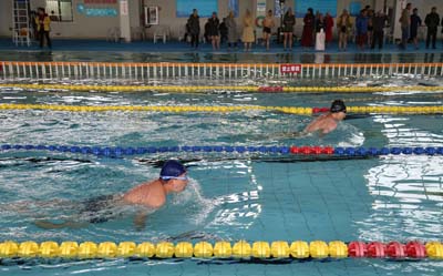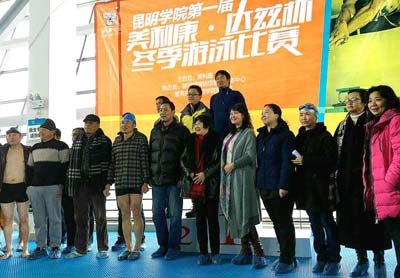 beat365官方网站第一届“美利康•达兹杯”冬季游泳比赛于12月18日在beat365官方网站游泳馆隆重举行。学校党委副书记、纪委书记、工会主席李媛芬,学校工会常务副主席孙晓坤,学校场馆管理服务中心主任冯娟,昆明美利康•达兹科技有限公司董事长乔艳君等相关领导出席本次开幕仪式。