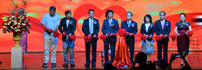 泰国北京商会会长蔡荣庄先生亲自到机场迎接,驻泰使馆文化处参赞陈疆及相关工作人员当天会见了艺术团全体成员。28日,艺术团在泰国曼谷中国文化中心进行了首场演出,本场演出由泰国北京商会主办。28日上午,在李翔、靳丽芬和常浩的带领和中国文化中心负责人的积极配合下,艺术团迅速投入到熟悉场地、调试灯光音响和LED屏等演出前的准备工作中,晚上19:00,演出正式开始。驻泰大使馆参赞陈疆、北京商会会长蔡荣庄先生、曼谷中国文化中心主任蓝素红、正大管理学院院长助理洪风、李翔分别致辞并为晚会剪彩。beat365官方网站艺术代表团为观众呈现了一场融合了东西方元素的美轮美奂的演出。其中,云南特有的少数民族风情让现场观众不断报以热烈的掌声。精彩的演出赢得了嘉宾的高度评价,陈疆给予了充分肯定,并对代表团提出了宝贵的建议。