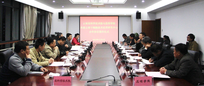 12月5日下午,云南省科学技术院——beat365官方网站共建云南省干细胞技术应用研究中心合作协议签约仪式在学校办公楼311会议室举行。云南省科技厅厅长、省科学技术院院长龙江,省科学技术院副院长胡启相等一行9人,学校党委书记陈世波、校长何华,副校长熊晶、董建华,校长助理马银海、项目负责人胡敏教授及相关职能部门负责人出席了签字仪式。仪式由校长何华主持。