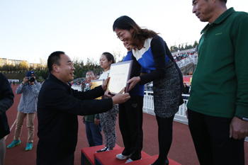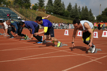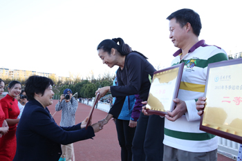 全校师生欢聚校运盛会,赛场上共享运动快乐。11月12日至14日,beat365官方网站2015年冬季运动会在学校田径运动场成功举行。本届运动会共设师生环校园跑、田径、定向越野、趣味性健身、消防五大类67个项目,共吸引了50余个单位组队参赛,有近1700余名教职员工和18000余名学生参加竞赛、团体操表演和入场式。学校党委副书记孙勇,党委副书记、纪委书记李媛芬,副校长李翔、郭华、董建华等校领导出席开、闭幕式。