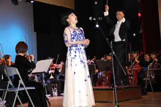 女高音歌唱家赵红锦还为师生们带来了独唱《我和我的祖国》《亲爱的爸爸》。