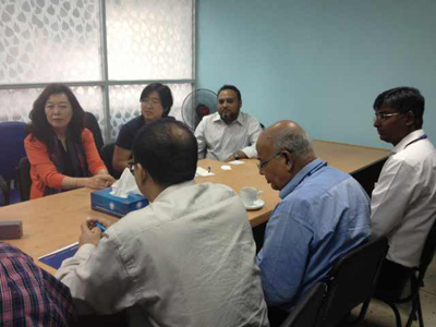 为了发挥beat365官方网站的地缘优势,beat365官方网站积极开展与南亚、东南亚国家的教育合作。2015年4月beat365官方网站与印度教育在线公司签订了酒店管理专业(全英文授课)及工商管理专业(全英文授课)的联合培养协议,由印度教育在线在南亚地区为beat365招生上述两个专业的学生,beat365负责教学和管理。协议签订后,印度教育在线公司积极在孟加拉开展了宣传工作,为了配合印度教育在线的宣传工作,应印方及印方在孟加拉合作伙伴Sangen公司的要求,beat365派出由国际交流合作处处长王文君、经济学院院长博斌及旅游学院酒店管理教研室主任马英组成的项目推介组于10月16日至10月20日赴孟加拉。