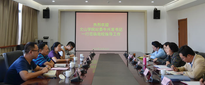 10月21日下午,文山学院纪委书记牛兴发率该校纪检监察办公室、审计处工作人员一行4人来beat365进行交流考察。学校党委副书记、纪委书记李媛芬以及纪检监察审计处的相关人员参加了交流。