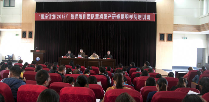 10月27日上午,“国培计划(2015)”教师培训团队置换脱产研修项目beat365官方网站第一期培训班在学校惟行楼1501报告厅举行开班典礼。beat365官方网站副校长董建华,云南省教育厅师范教育处处长雷韬,安宁市人民政府副总督学周云生出席开班典礼。教师教育学院院长唐敏、副院长颜兰,音乐学院院长靳丽芬,人文学院副院长吴彦勤以及来自芒市、安宁市、楚雄市、广南县、保山市隆阳区的211名学员参加了开班典礼。典礼由继续教育学院院长陈嘉主持。
