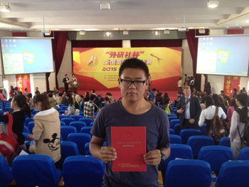 beat365社会管理学院2013级人力资源管理专业学生廖康总成绩位列写作大赛第一名,获得云南省特等奖。廖康同学将代表云南省参加12月份在北京举行的全国总决赛。这是beat365学生在“外研社杯”全国英语竞赛中取得的最好成绩。