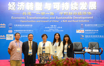 10月31日—11月2日,由中国(海南)改革发展研究院(一下简称“中改院”)主办,以经济转型、可持续增长与全体治理——共建“一带一路”中的新型经济体为主题的新兴经济体智库2015年会暨第80次中国改革国际论坛在海口举行。会议云集了来自中央相关部委、国家级研究机构、高等院校和28各省(市、自治区),美国、德国、巴西、新加坡、泰国、韩国等10个国家的智库代表,以及联合国开发计划署、亚洲开发银行等国际机构的专家学者。海南省委常委、常务副省长毛超峰致欢迎辞,学校副校长熊晶受邀参加了此次会议,学校昆明科学发展研究院办公室、科研处、校办相关人员随行。