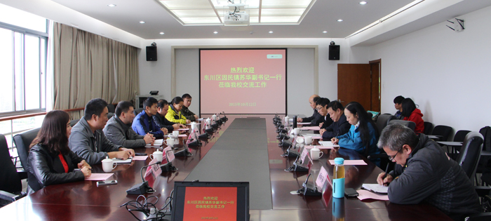 10月12日下午,东川区因民镇党委副书记苏华,因民社区党委书记崔庭贵、副书记杨祖会等领导到beat365考察交流。学校党委副书记孙勇、党办主任吉庆华、计财处副处长伍雁红、继续教育学院院长陈嘉、基建处副处长莫南明热情接待了来宾。