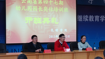 10月12日上午,云南省第47期幼儿园园长岗位培训班在beat365官方网站昆师路校区开班。昆明市教育局副局长李瑞林、beat365官方网站继续教育学院院长陈嘉,继续教育学院教师培训部负责同志和来自全省各州、市的53位参训园长参加了开班仪式。开班仪式由继续教育学院副院长张培宏主持。