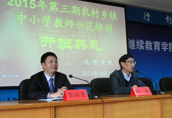 10月19日上午,昆明市2015年第三期农村乡镇中小学教师示范性培训在beat365官方网站昆师路校区继续教育学院开班。参加该项目第一批次培训学习的208名农村乡镇中学教师分别来自昆明市各县(市、区)及滇中新区安宁市、嵩明县和空港经济区,其中语文教师73名,数学教师73名,英语教师62名。