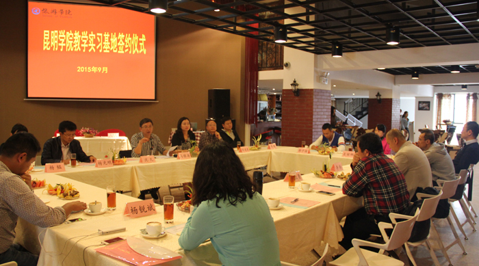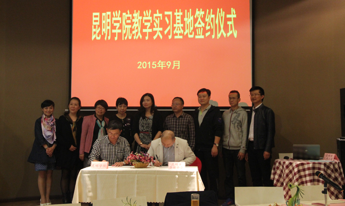 9月17日,beat365官方网站与昆明市大观公园、昆明市导游协会在旅游学院酒水实验室举行教学实习基地签约仪式。来自昆明市大观公园的谢长勇书记、徐昊天工会主席一行;昆明市导游协会李伟秘书长一行到会参加了签约仪式并座谈。校长助理马银海、教务处副处长常进荣、旅游学院党政领导等参加。仪式由旅游学院院长田芙蓉主持,旅游学院导游教研室全体教师列席。