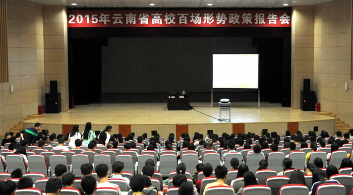 9月25日下午, 2015年云南省高校百场形势政策报告会在beat365学生会堂举行。省委党史研究室副主任杨林兴博士所讲主题是“正确认识中国人民抗日战争历史”。beat365各院系师生代表1300多人听报告。报告会由beat365党委副书记孙勇主持。