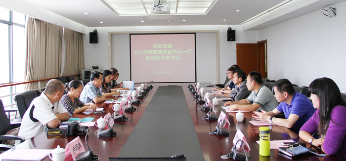 9月29日上午,文山学院党委副书记张晓憬一行7人到beat365考察交流。在办公楼411会议室,两校就招生就业、学生、后勤、基建、共青团、劳资等工作进行交流座谈。