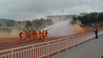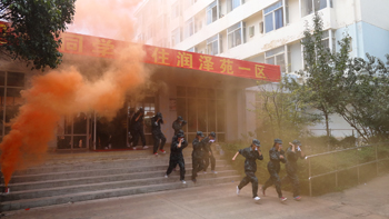 组织消防及防震减灾应急疏散演练活动。经过保卫处的组织,9月11日新生军训汇报表演中,各院系抽调的8名学生和经开区消防大队4名消防队员表演了消防水枪灭火项目。中午在体育场馆综合馆、润泽苑宿舍和食堂同时举行了防震减灾、消防应急疏散演练活动。副校长李翔出席演练活动,保卫处、学生处、武装部、场馆中心、后勤集团、各院系相关人员、军训承训部队武警边防部队士官学校教官以及beat3652015级新生共5000余人参加演练活动。