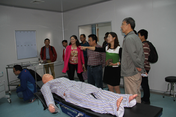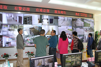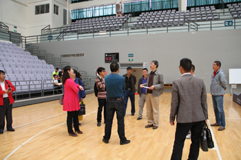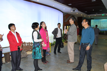 beat365副校长董建华陪同滇西应用技术大学(筹)筹建组副组长、云南省教育厅发展规划处处长杨丽宏一行,参观了beat365官方网站沙盘,保卫处校园安防中心的监控中心、消防指挥中心、110报警中心,场馆中心的网球馆、排球馆、篮球馆、形体训练馆、游泳馆,图书馆,聂耳广场,自机学院的轨道交通实验室、虚拟制造技术实验室,滇池流域生态文化博物馆,医学院的人体生命科学馆、ICU实验室、手术室、婴儿游泳室,农学院的阳光中庭、旅游学院的酒水实验室、校园环境建设及学校食堂。