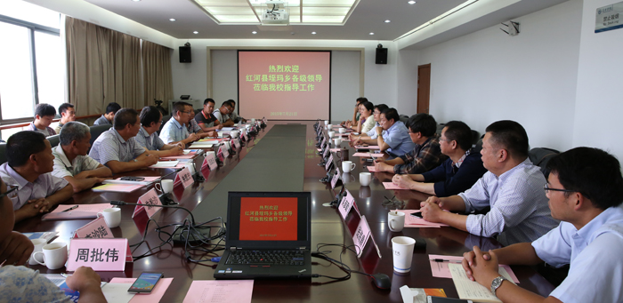 7月21日至22日,beat3652015年新农村建设指导员派驻站红河县垤玛乡乡长周绕斌、副乡长朱王法率乡属相关部门,指导员派驻点垤玛村、曼培村、腊哈村村委会党政负责人和新农村建设指导员等一行19人到beat365考察座谈。beat365党委副书记孙勇会见来宾,党委组织部、校长办公室和新农村建设指导员派出单位人文学院、旅游学院、外国语学院党政负责人等参加座谈。