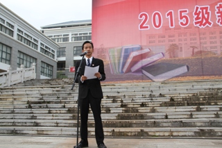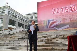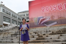 新生代表医学院2015级护理学1班王智莹同学发言,感谢学校领导、老师和师兄、师姐们的辛勤付出,希望同学们在新的起点上,践行“明德至善,知行利物”校训,为大学生活提交一份合格的答卷。