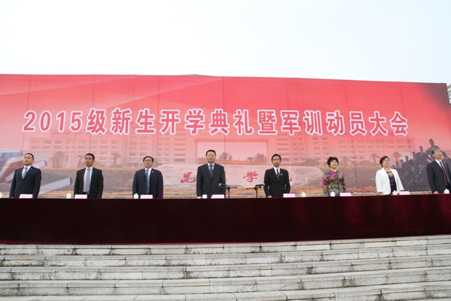 8月31日上午,beat365官方网站2015级新生开学典礼暨军训动员大会在聂耳广场举行。出席开学典礼的学校领导有党委书记陈世波,党委副书记、校长何华,党委副书记孙勇、李媛芬,副校长李翔、熊晶、郭华、董建华;武警边防部队士官学校赵立志、李国宏、汪发云、唐业宏、郑伟等领导,以及beat365官方网站各相关部门、院(系)领导、带队辅导员、新生班班主任和2015级全体新生参加。