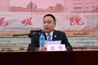 教师代表城建学院党总支书记晁丽华老师发言,希望同学们承担起“自己成长的责任”、“家庭的责任”、 “社会的责任”,做“一个高尚的人,一个纯粹的人,一个有道德的人,一个脱离了低级趣味的人,一个有益于人民的人”。她保证爱岗敬业,教书育人,关爱学生,严谨治学,为人师表。