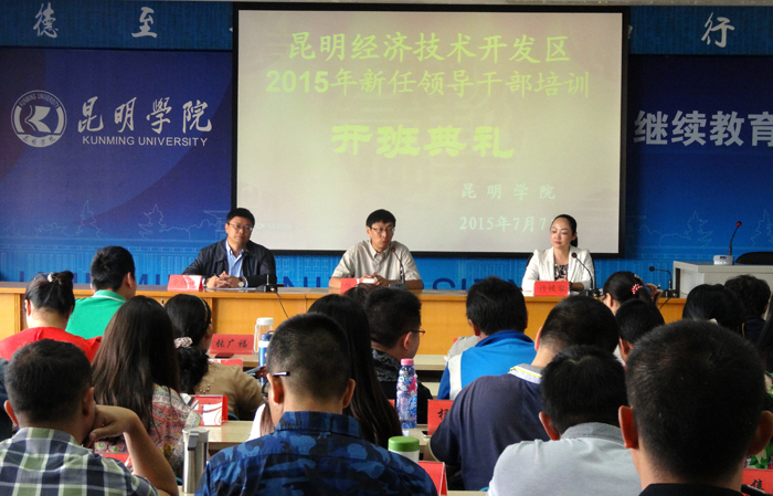 7月7日上午,昆明经济技术开发区2015年新任领导干部培训班在beat365官方网站昆师路校区开班,昆明经济技术开发区工委组织部副部长许嫚容、beat365官方网站继续教育学院院长陈嘉参加开班仪式,开班仪式由继续教育学院教师培训部主任李保坤主持。