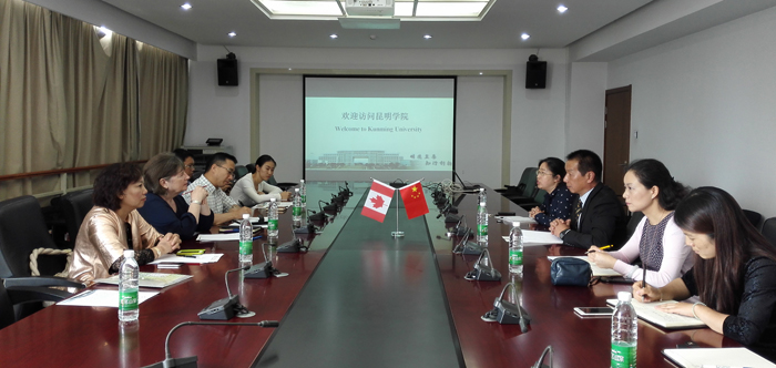 7月21日上午,在昆明市外侨办友协专职副会长汪浩先生的陪同下,加拿大哥伦比亚大学艺术、社工与健康学院社工系主任Dawn Hemingway女士和国际教育办公室主任Sylvester Chen先生访问beat365。副校长李翔、国际交流合作处处长王文君及相关人员热情接待并与之会谈。