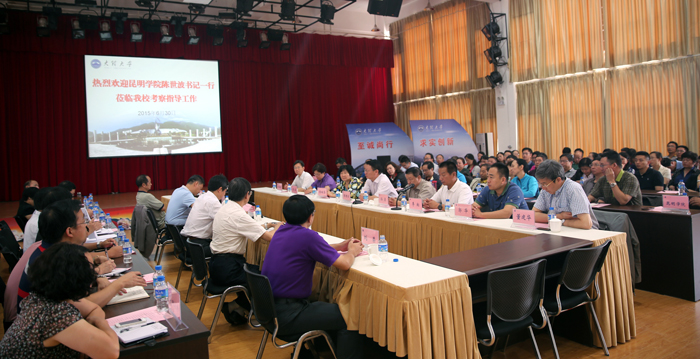 6月30日上午,在返昆途中,学校党委陈世波书记一行到大理大学进行了考察交流。大理大学党委书记李兴华热情接待了陈世波书记一行。交流座谈会在学生活动中心举行。大理大学党委副书记段林、纪委书记杨建华、副校长洪世久、刘荣和机关各部门领导参加了座谈会。会上,李兴华介绍了大理大学的办学历史、学科专业建设、留学生教育、就业工作、科学研究、产学研合作、干部工作以及更名大学的经验和做法。陈世波介绍了beat365的办学思路定位、学科专业发展、教育教学改革、服务地方发展等方面的情况。两校达成了今后要加强交流合作、促进共同发展的一致意见。随后,大家参观了生物科学馆和校园。