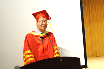 在同学们挥别母校、收获四年大学硕果、即将步入社会的喜悦时刻,毕业生代表经济学院2011级国际经济与贸易1班邢波文同学,毕业生家长代表刘茂蓉女士,教师代表人文学院吴彦勤副院长分别登台发言,他们回顾了师生岁月如诗、青春如梦的校园学习、生活经历,分享子女在昆院学习与生活的点点滴滴,讲述教书育人的喜悦与师生情谊。