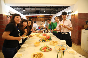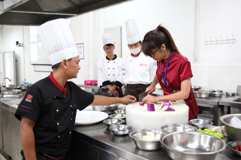 在全天的活动中,双方师生共同参观了beat365官方网站滇池流域生态文化博物馆;步行参观了美丽校园;重点考察了旅游学院烹饪实训中心,欣赏了烹饪专业学生的雕刻技术,观摩了滇菜烹饪课程,参与制作并品尝了云南特色凉米线;在酒水实验室体验了普洱茶的芬芳及冲泡互动,在咖啡与鸡尾酒调制过程中双方学生获得了知识的互补和提升。丰富多彩的安排和体验给来宾们留下了深刻的印象,活动在相互交换礼物、合影留恋、两岸师生依依不舍中圆满落下帷幕。